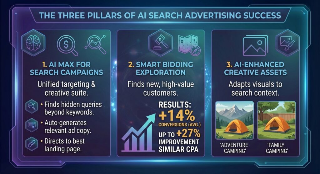 Google’s AI Max for Search campaigns bring together targeting and creative enhancements in a one-click feature suite. Here’s what makes them powerful: